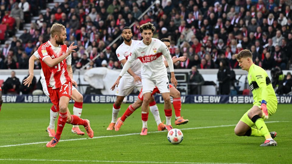 Der VfB hat eben keinen Kane, auch keinen Upamecano, Laimer oder Olise, und nicht einmal der einst zum Neuer-Nachfolger auserkorene Nübel kann im Duell mit Nachwuchskeeper Urbig punkten. Gleich zweimal flutscht der Stuttgarter Nummer eins der Ball durch die Hände, beim zweiten Mal landet er zum entscheidenden 0:3 im Netz (78.).